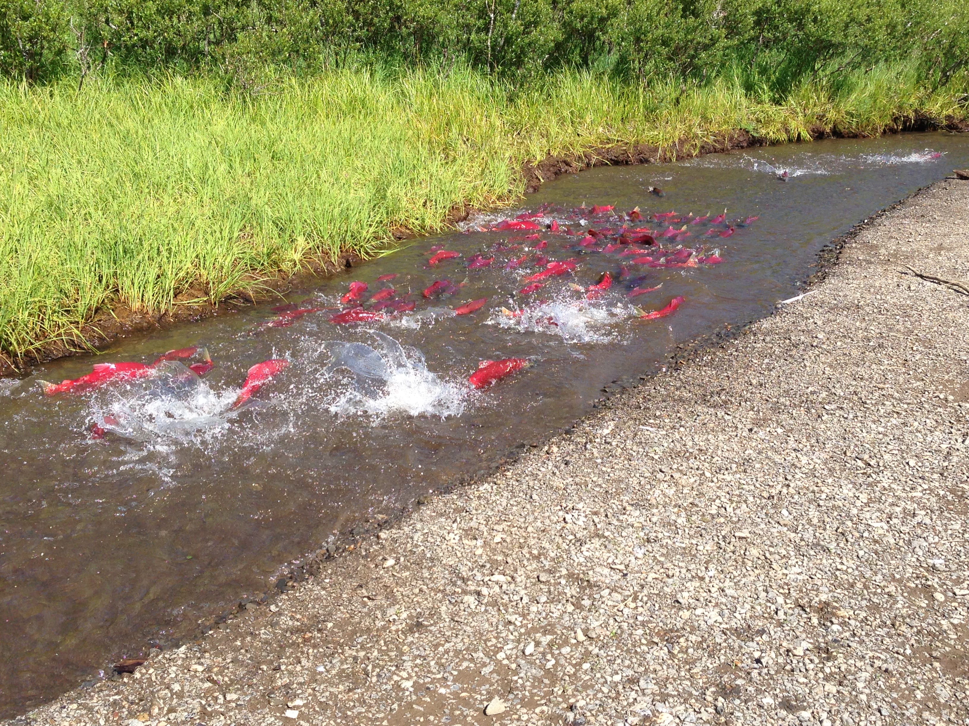 (photo: salmon going home. I fished on the ocean, so seeing them here was a rare privilege)